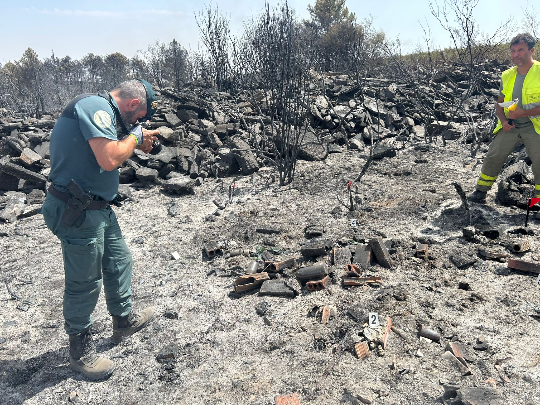 Las investigaciones se iniciaron de forma inmediata, asumiendo el SEPRONA la investigación de las causas del Incendio Forestal y la posible autoría, concluyendo, tras el estudio del terreno y aplicando el método de evidencias físicas, que se trata de un incendio iniciado en una parcela particular utilizada como depósito irregular de residuos.