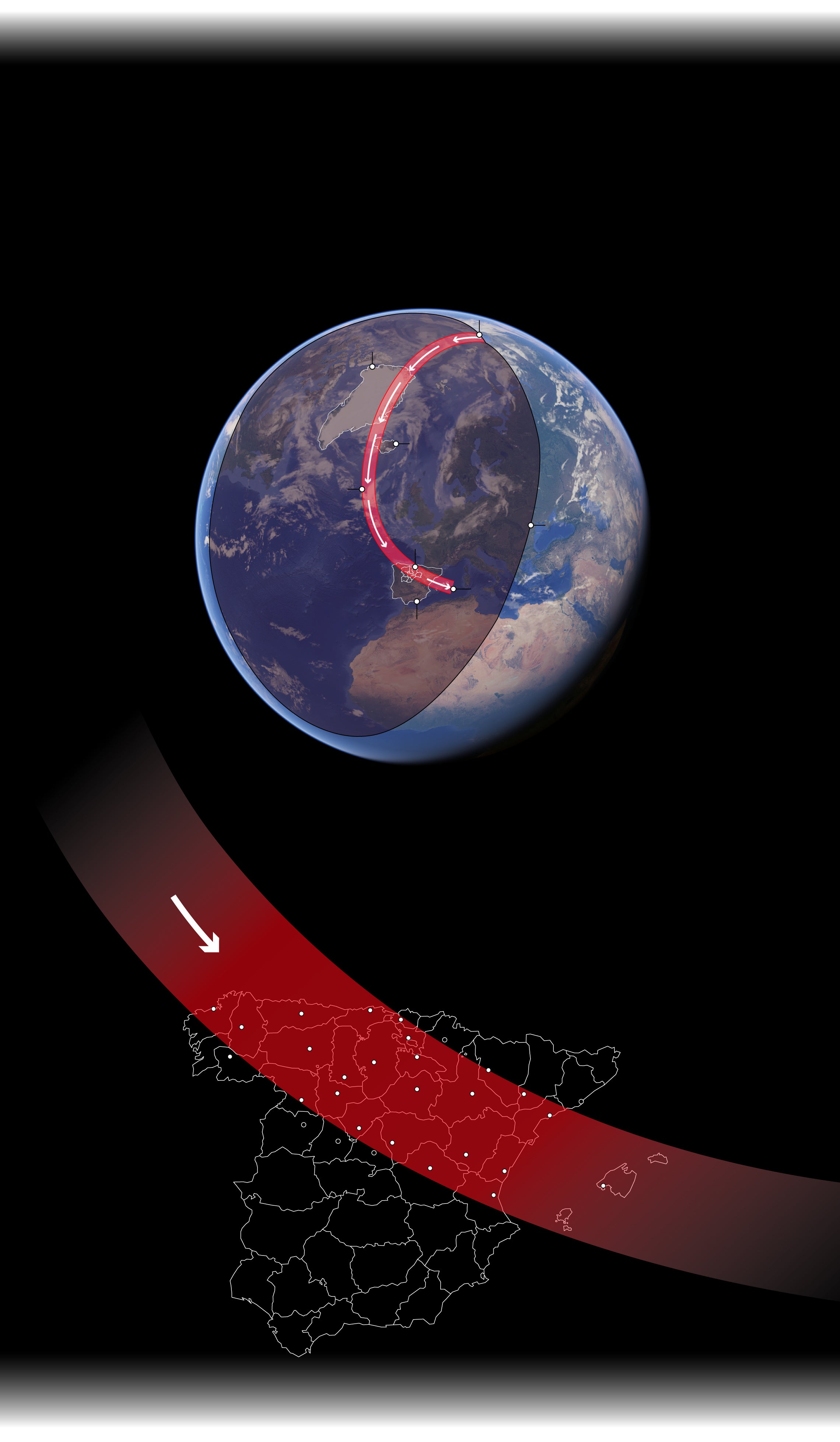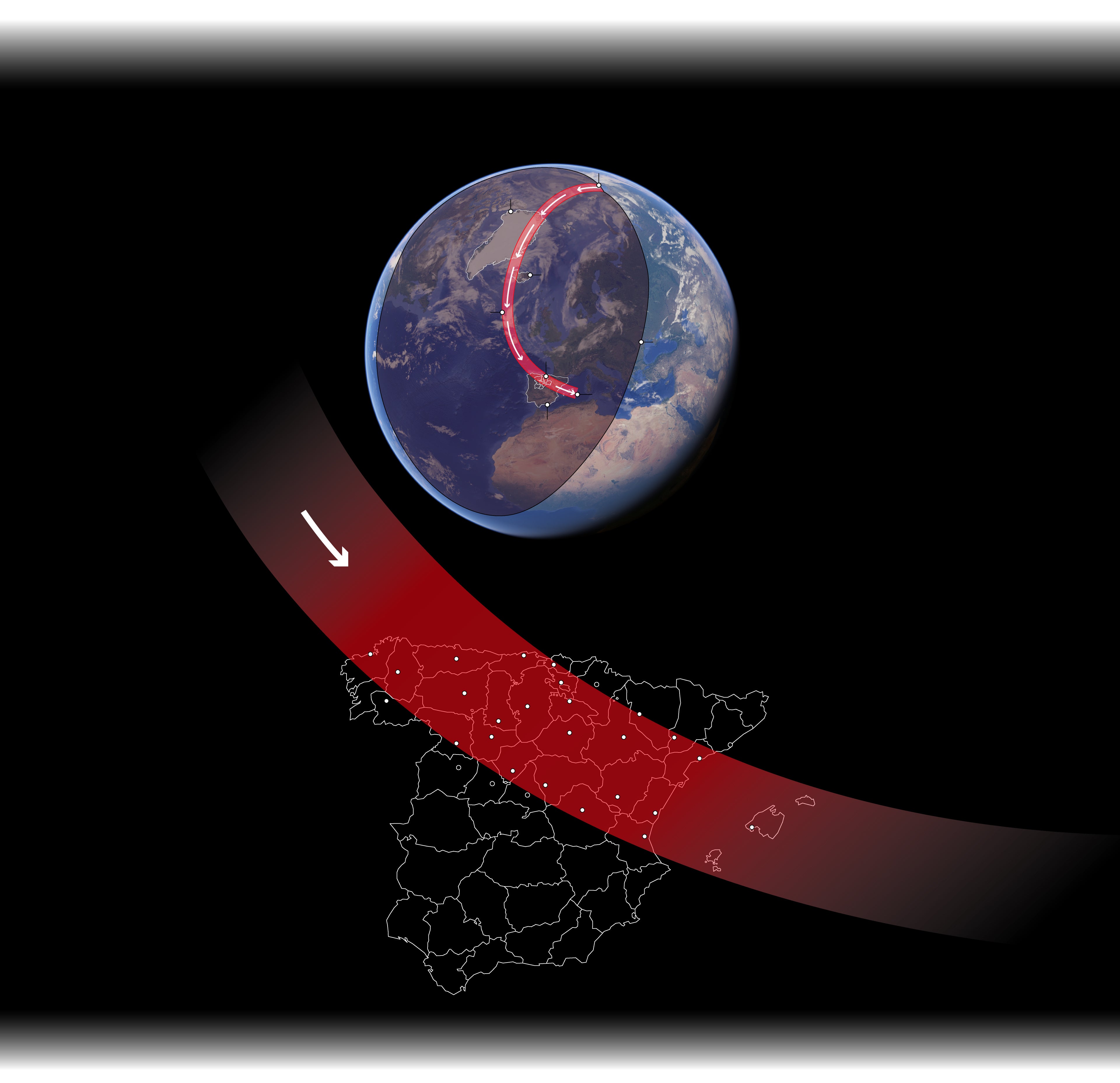 Además de la conjunción de astros y situaciones, se da la circunstancia de que este eclipse solar total, el más espectacular, se verá prácticamente sólo desde nuestro país. La franja en la que será visible hace una caprichosa curva que une la república de Yacutia, la más grande de Rusia, con un punto en medio del mar Mediterráneo, donde acaba.