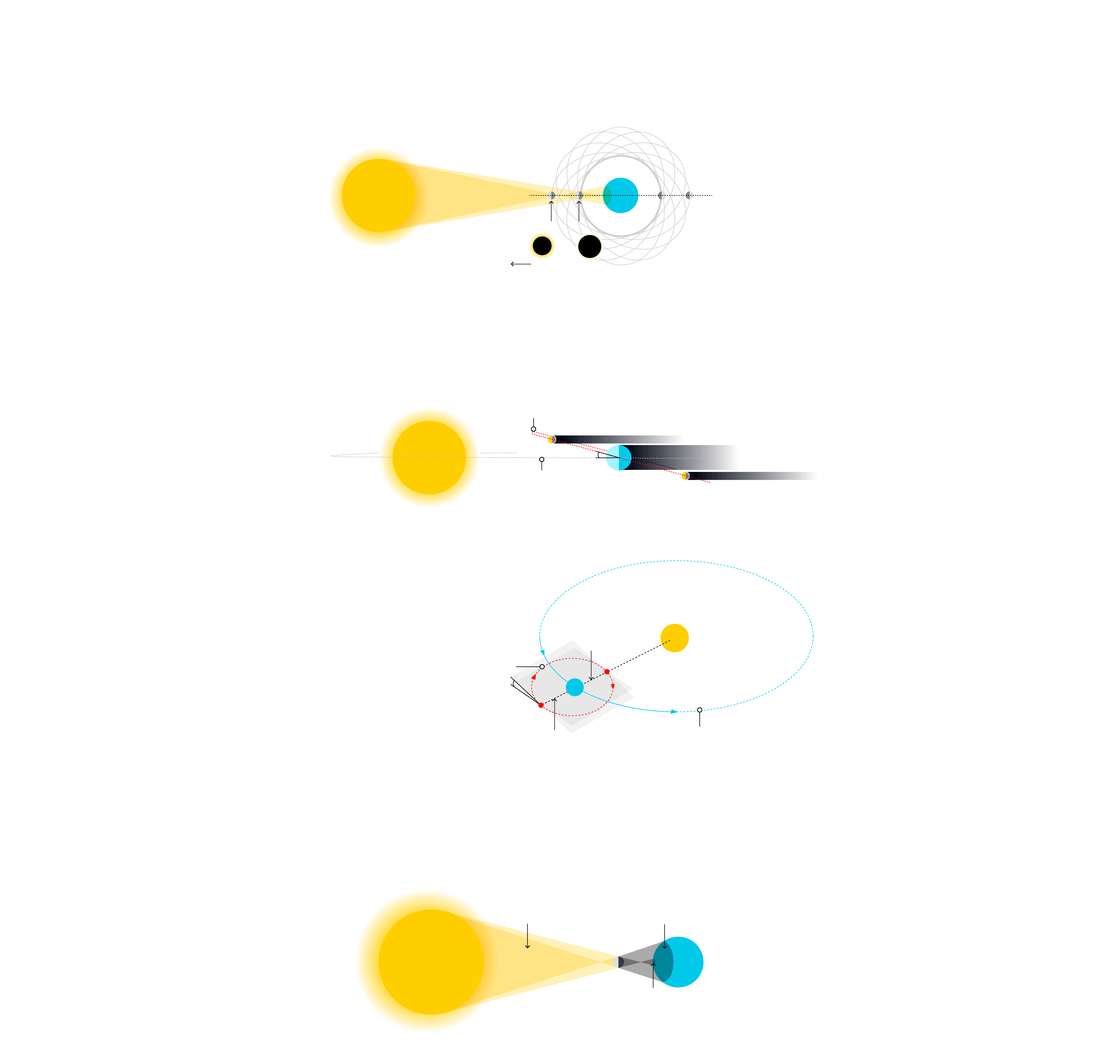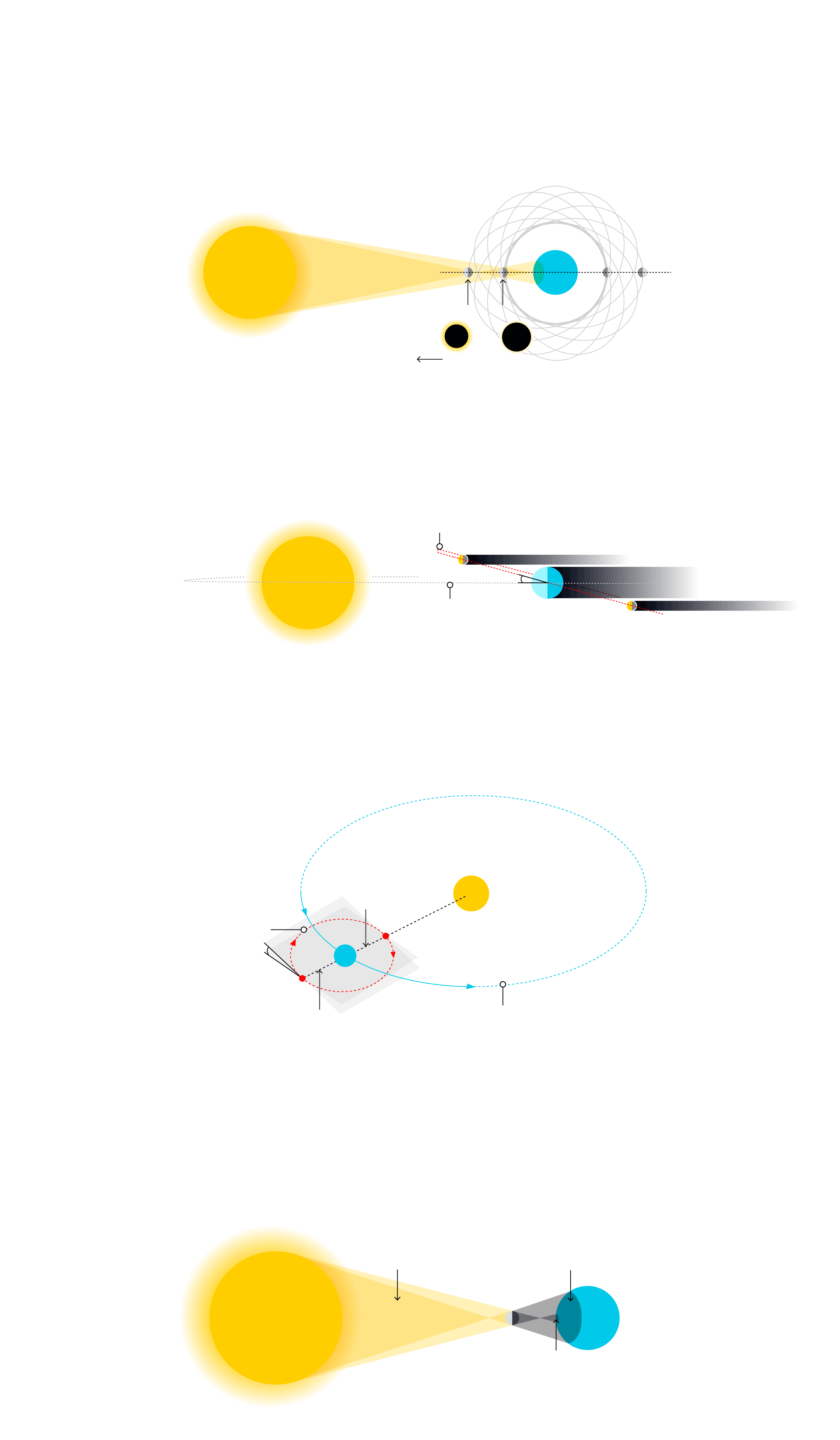 Por la naturaleza de la luz, que se dispersa, el resto de la sombra arrojada por la luna será menos intensa y estará parcialmente iluminada. Allí el eclipse será anular o parcial. A esta parte de la sombra de le llama penumbra.