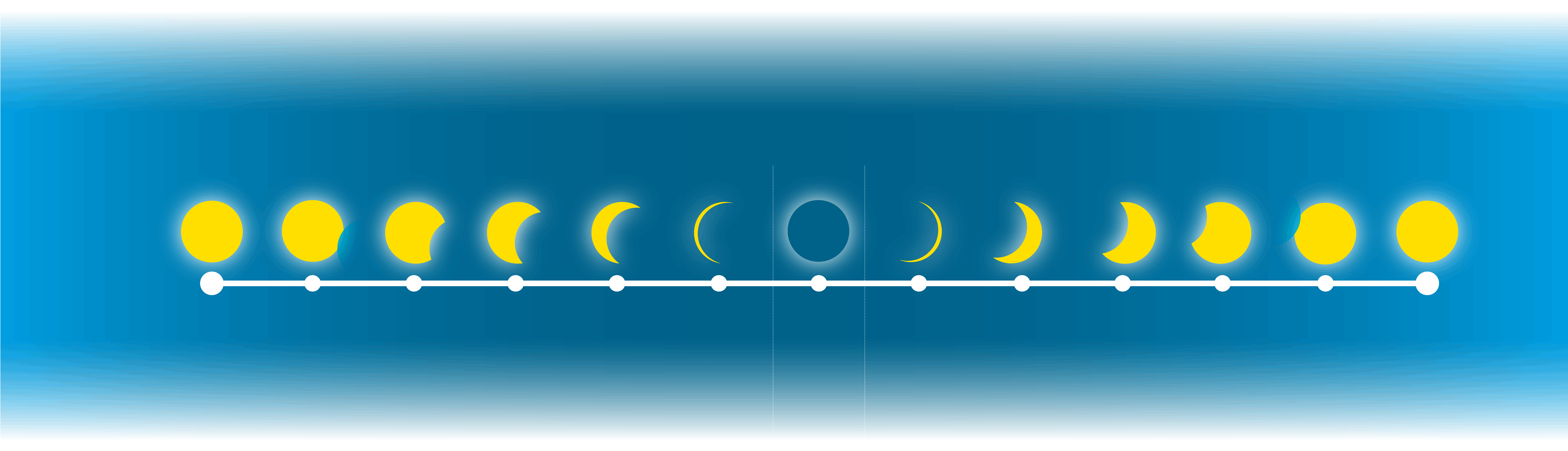 La luna nueva se da cuando ésta se encuentra entre el sol y la tierra. Si está detrás de la tierra, se produce la luna llena.