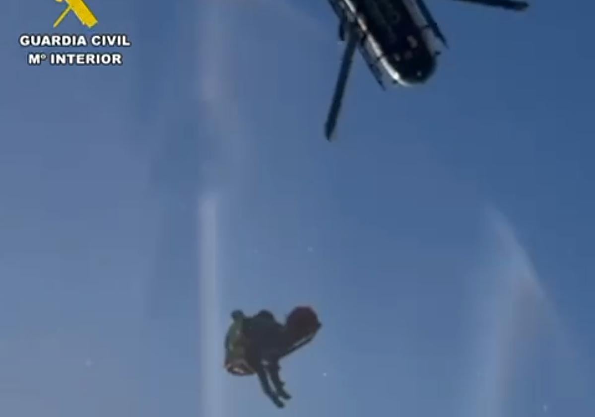 Tras una evaluación rápida de la situación, a las 19:10 horas se procedió a la evacuación mediante un ciclo de grúa, subiendo a la víctima en camilla acompañada por una médica y un rescatador.