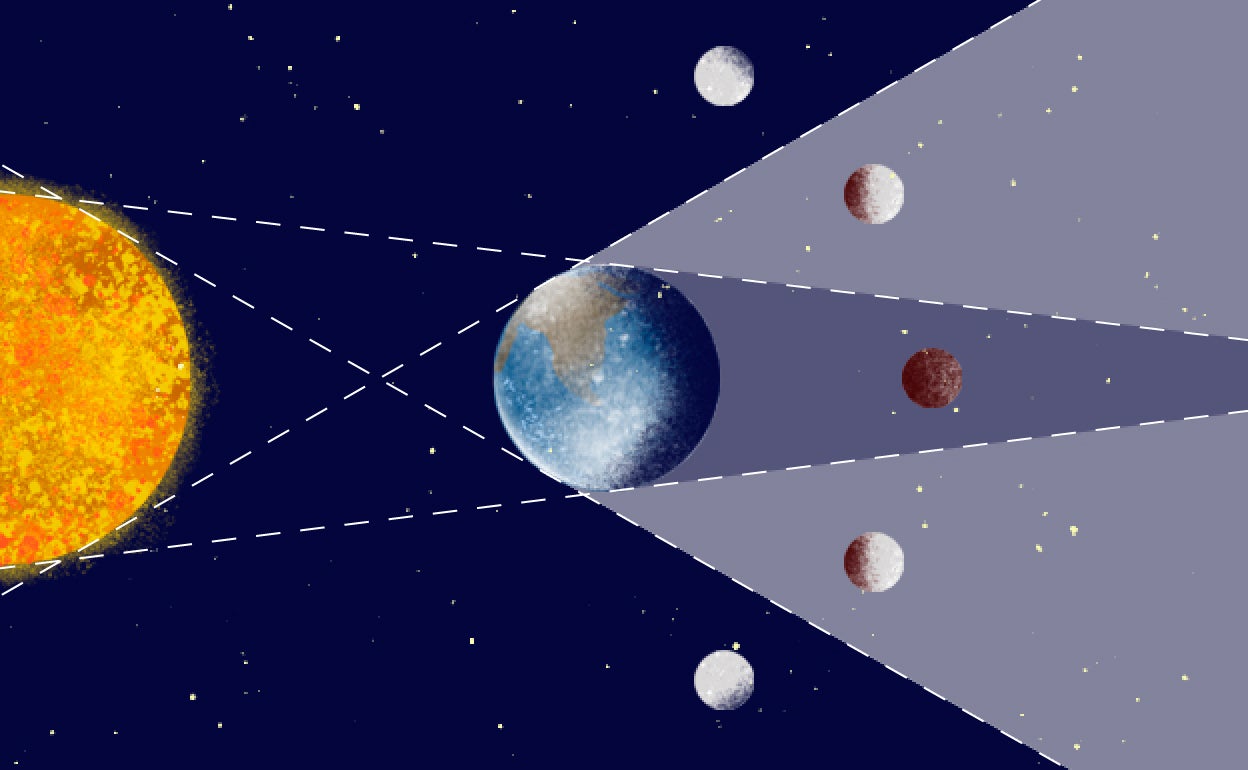 Este fenómeno es el resultado de la alineación perfecta entre el Sol, la Tierra y la Luna, de modo que el satélite queda sumergido en la sombra que nuestro planeta proyecta en el espacio, formada por la umbra y la penumbra. Cuando la Luna pasa por la umbra se produce el eclipse lunar en todo su esplendor.