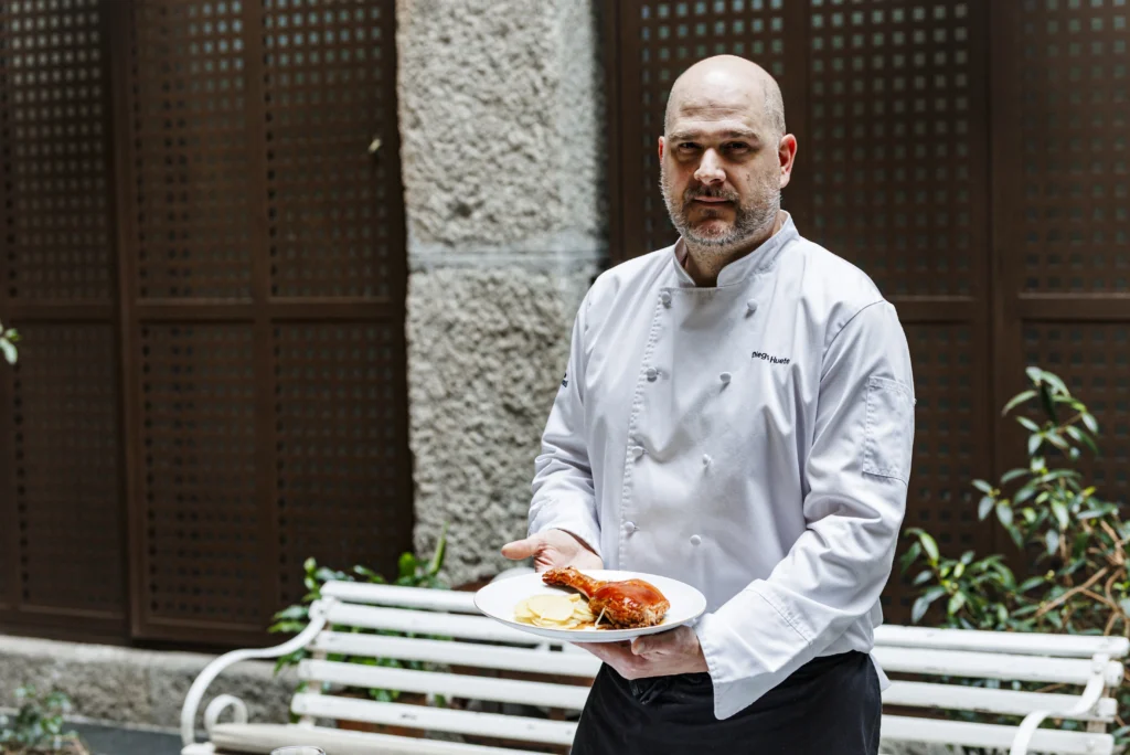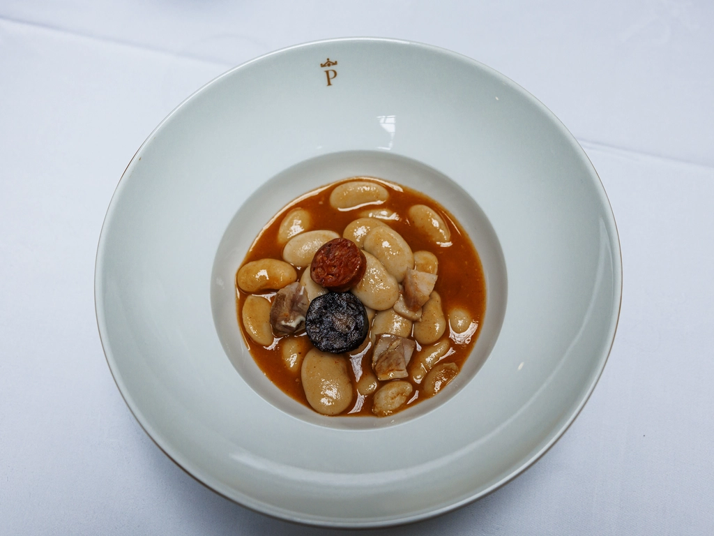 Diego Huete es un santanderino que conoce al detalle la cocina castellano-leonesa. Es un gran conocedor de las carnes. Desde que está al frente de la cocina del Parador de La Granja se ha propuesto renovar la comida tradicional segoviana. Llegó a ser jefe de cocina muy rápido, por lo que tuvo que ser autodidacta para estar a la altura de lo que se espera de su arte. La tierra del Real Sitio no sólo es feraz, sino que algunos de sus productos poseen una fama reconocida. Los judiones son ese manjar que se ha constituido “como un elemento de la cocina de nuestras familias, pero que yo he intentado aproximar a una cocina más sofisticada”, explica Diego. Cuando uno piensa en los judiones de La Granja puede caer en la tentación de creer que es un plato pesado, “pero con las técnicas de una gastronomía moderna podemos conseguir refinarlo”. Concentrando de forma natural y colando el caldo, consigue una textura mucho menos densa que la tradicional, además, mide con cuidado la cantidad del chorizo y la morcilla. El resultado es un plato que, sorprendentemente, es mucho más ligero, algo muy de agradecer para poder probar alguno de sus otros platos.