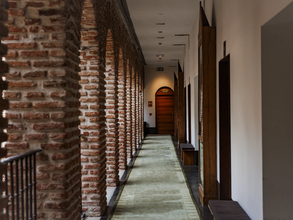 En el mejor sentido del término, uno puede perderse a través de sus tres plantas y de su extensión. Desde la pequeña biblioteca en la que podemos sentarnos a leer en paz hasta sus tres patios. A modo de recomendación, si quieren leer un buen libro, mejor sentarse en el patio toscano con el tranquilo sonido de la fuente y la escultura de Apolo velando por las luces, la poesía y la música. La canción del agua es el compañero perfecto para meditar, seguir con ese libro o inspirarse, por qué no, para escribir ese libro que teníamos pendiente. Según Zerbini, hay varios escritores que suelen hospedarse en el Parador de La Granja para redactar sus novelas.