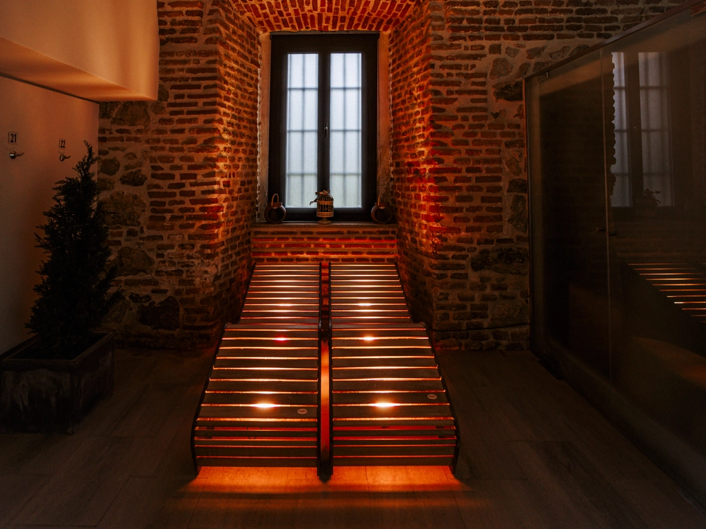 En estas instalaciones el tiempo parece que no existe; en la piscina climatizada, con el agua fluyendo, el cuerpo pierde esa presión que el estrés nos causa con el paso de los días. La temperatura de la sauna activa la circulación del cuerpo mientras la calma no desaparece. Además, es una de las mejores formas para recuperar el sueño y dormir bien. Después, la sala de masajes, con los muros de ladrillo y de piedra a la vista, es un pequeño paraíso para desterrar el estrés.