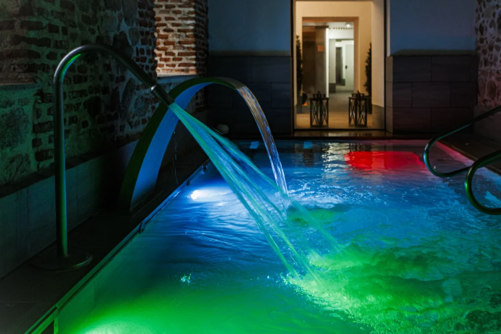 El Parador de La Granja posee un spa. Esto ya es una máxima. No hace falta venir con tu pareja para disfrutarlo, aunque sea una experiencia difícilmente mejorable. Todo comienza en uno de los tres patios, donde podemos empezar tomando una infusión mientras empezamos a relajarnos. Después, entramos propiamente a las instalaciones, donde comienza el circuito hidrotermal. El Parador de La Granja ofrece varios tratamientos, masajes, exfoliación facial, o varios tipos de rituales. Hay para todos los gustos.