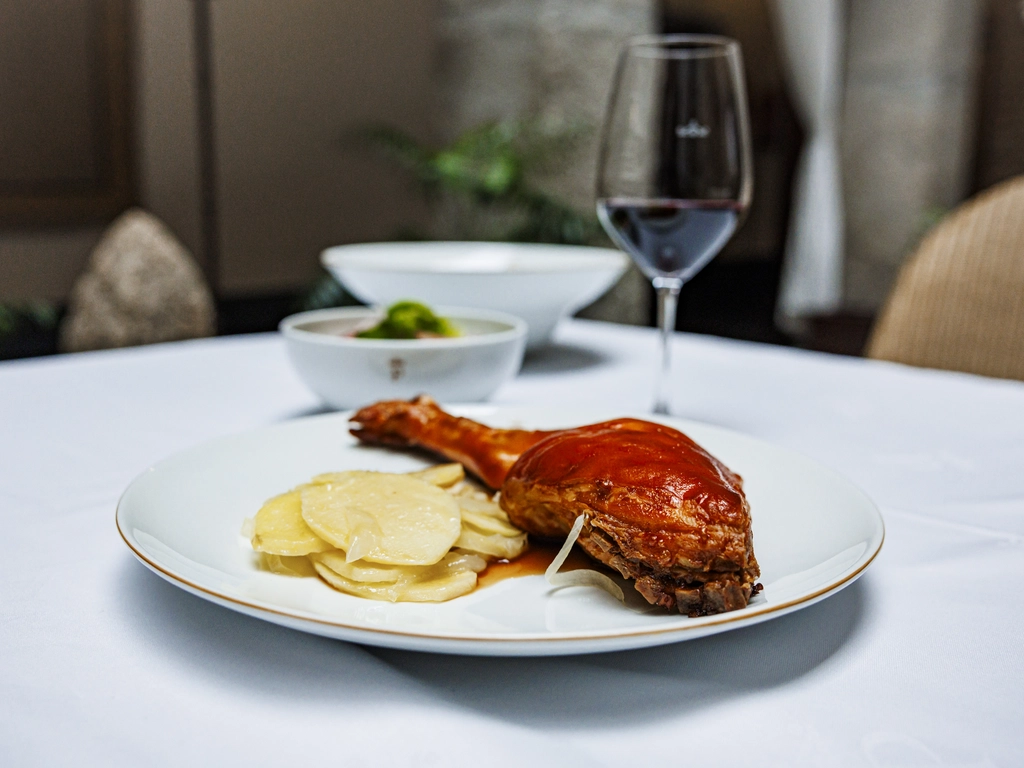 Además de una carta que abarca lomo de ciervo, sopa de ajo clásica o el solomillo de ternera, ofrece un menú tradicional segoviano: aperitivo de croqueta cremosa, judiones del Real Sitio y cochinillo segoviano. La decantación del sabor de Castilla y León ocurre en este menú. Por último, un ponche segoviano, suave y delicado.