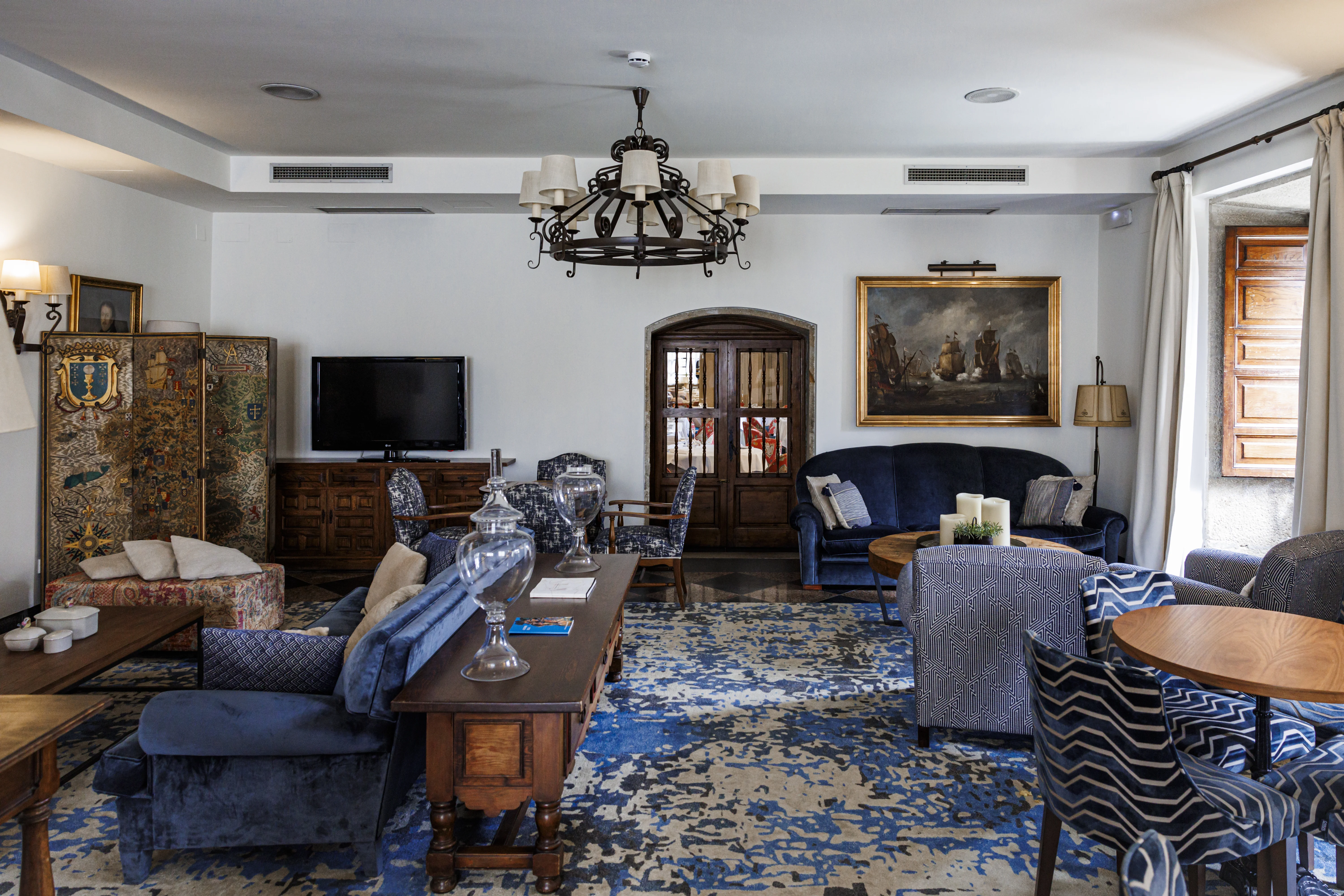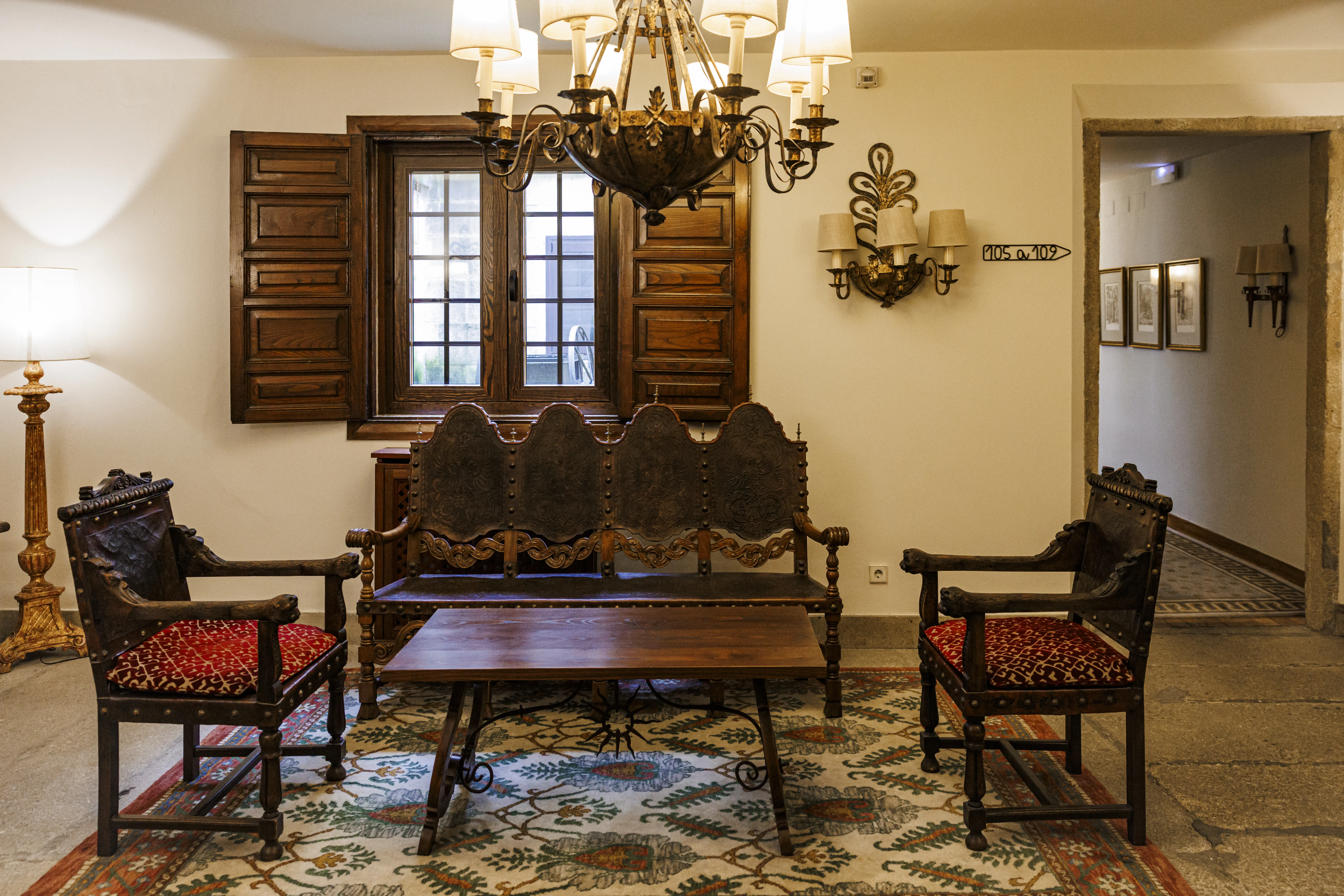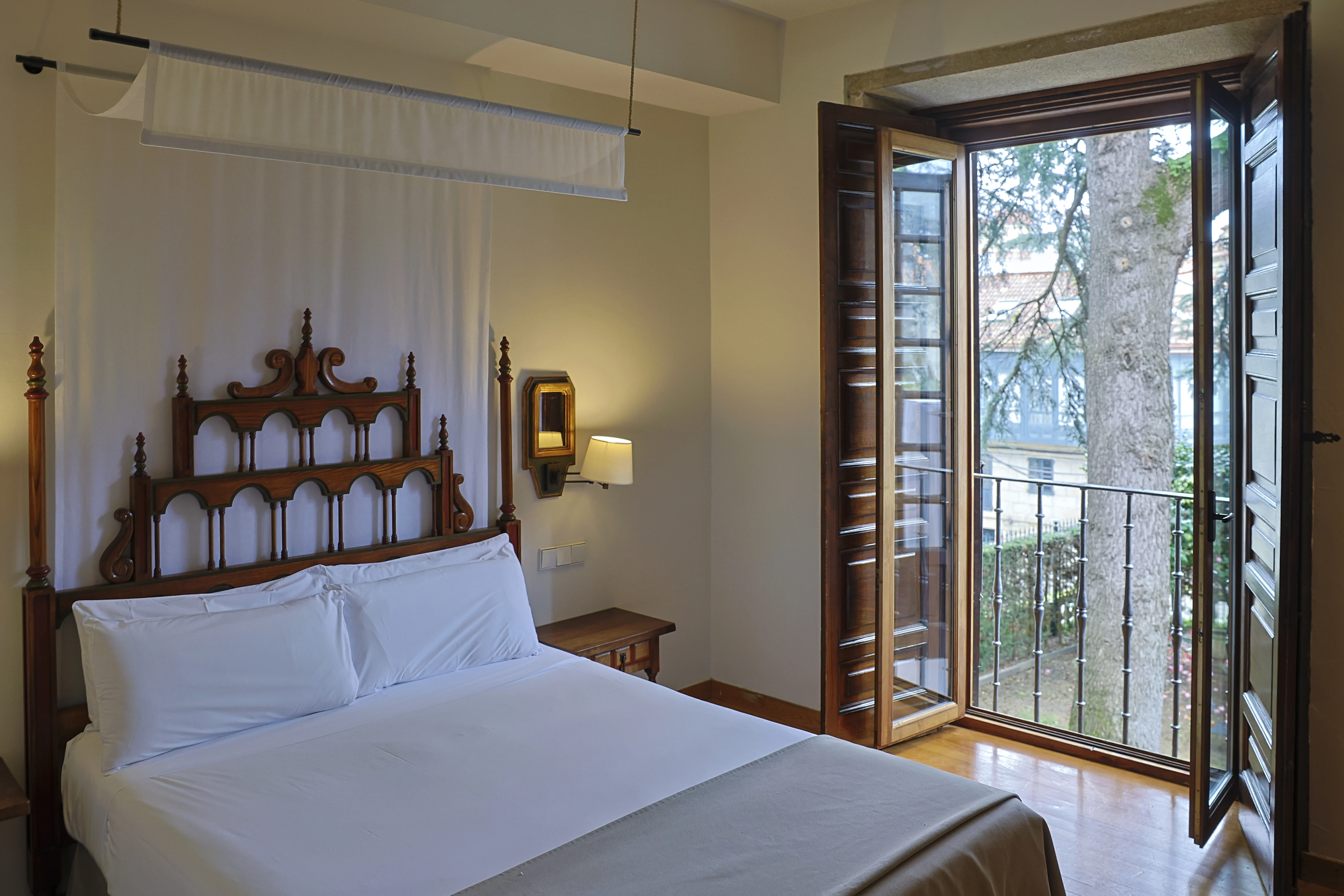 Lo que pervive en el Parador, sin embargo, es la herencia barroca de nuestro siglo dorado (pétreo en este caso). Al entrar, en el recibidor, la escalera de piedra se mantiene desde que los condes de Maceda construyeron el pazo. Una vez que subimos al primer piso, también se conserva una puerta de dos hojas de madera labradas a mano en perfecto estado. La casa del Barón alberga una serie de antigüedades que harían los deseos de cualquier coleccionista, como un bargueño con taracea del siglo XVIII o una colección de antiguas sillas portuguesas de cuero repujado. También hay presencia de pinturas de artistas gallegos como Ricardo Segura Torrella o Manuel Torres y una gran colección de marinas. “Este palacio conserva un conjunto de elementos que muchos sitios querrían tener en el estado de conservación tan bueno que tenemos aquí”, explica Meritxell. “El brillo del pasado —añade— no podría estar más vivo”.
