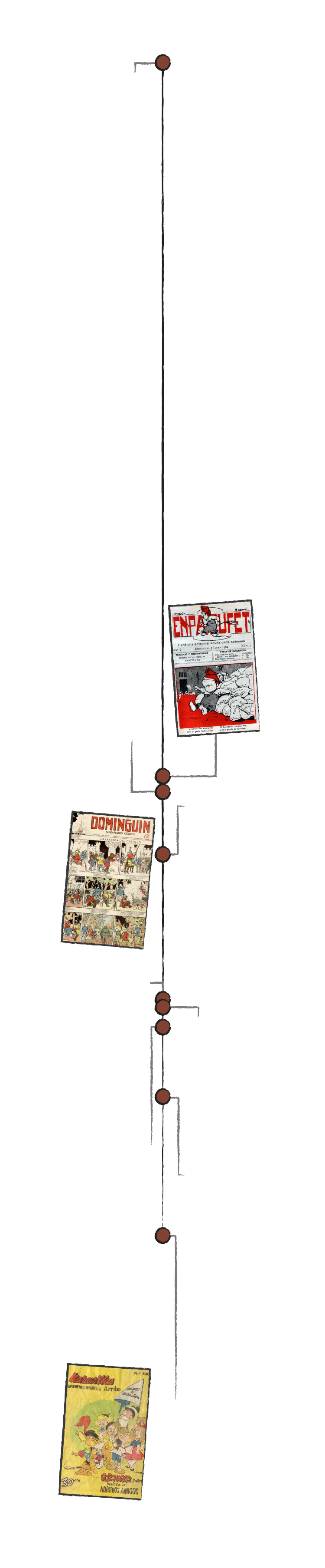 La revista catalana ‘En Patufet’ aparece y marca una transición hacia el formato de tebeo actual, con una estructura narrativa secuencial. Alcanza gran popularidad y desaparece durante la Guerra Civil