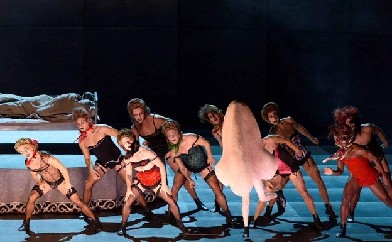 Estrenada en España en los años noventa del siglo pasado en versiones de cámara, llega al Real en una ambiciosa producción en la que se asocian el Covent Garden de Londres, la Ópera Cómica de Berlín y la Ópera de Sídney . Entre los casi noventa personajes del grotesco reparto figura una presentadora de televisión que encarna Anne Igartiburu. Haciendo de sí misma, en una breve intervención casi al final de la pieza, la presentadora trata de dar sentido al desmadre de esta ópera genial de la que se ofrecen siete funciones entre el 13 y el 20 de marzo.