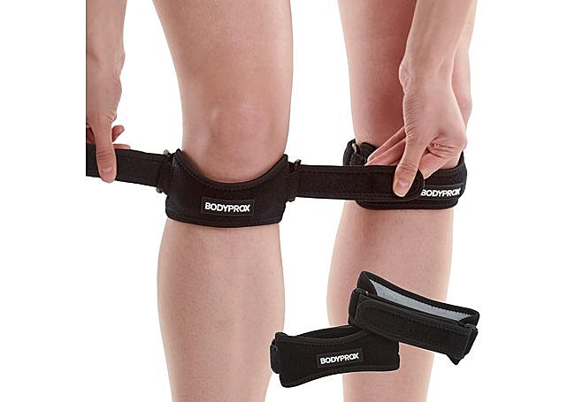 La correa de sujeción Bodyprox, en pack de dos, brinda soporte para la rodilla y compresión ajustable. Su diseño de talla única con velcro se adapta cómodamente a la mayoría de rodillas. El acolchado de gel de silicona ofrece alivio del dolor de rodilla por tendinitis o sobrecarga durante caminatas, entrenamientos o deportes de impacto. Fabricada con materiales resistentes y transpirables, puedes usarla bajo la ropa y mantener la frescura todo el día.
