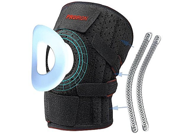 Con cuatro estabilizadores metálicos flexibles a cada lado, la rodillera PROIRON proporciona apoyo y libertad de movimiento en deportes o rehabilitación. El diseño abierto con almohadilla de silicona EVA en la rótula absorbe impactos y ayuda a aliviar molestias causadas por lesiones o artritis, sin añadir peso ni incomodidad.