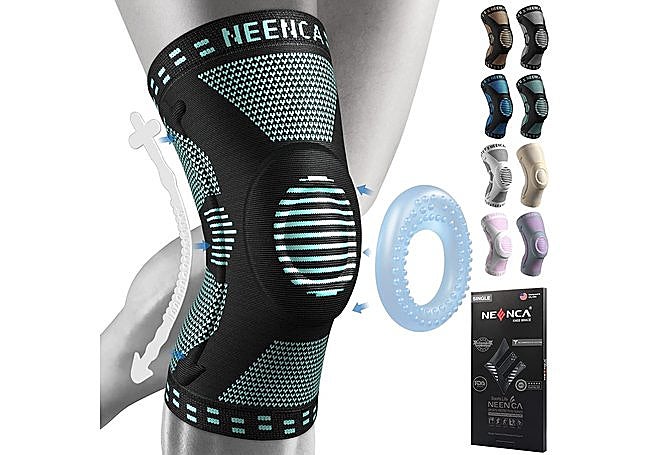 La rodillera NEENCA combina almohadillas de gel anatómicas y estabilizadores laterales metálicos en un formato de compresión profesional. Su tejido elástico y transpirable se ajusta cómodamente, evitando deslizamientos incluso durante ejercicios exigentes y proporcionando una sujeción firme sin renunciar a la movilidad.