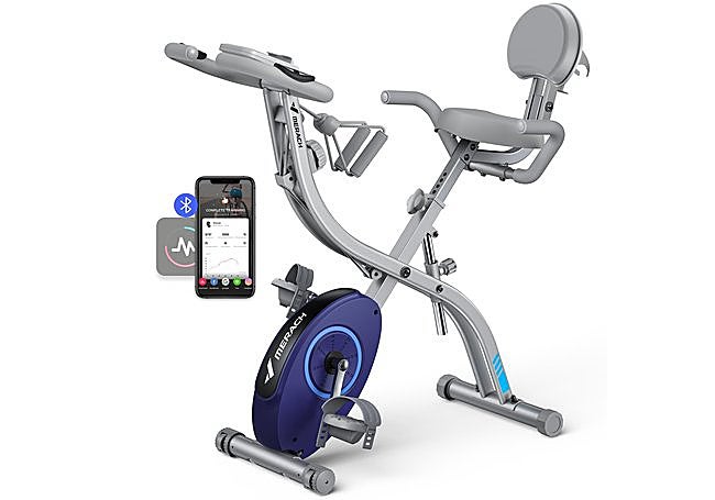 Con su diseño plegable 4 en 1, la bicicleta estática MERACH permite alternar entre posiciones vertical y reclinada, además de incorporar ejercicios de brazos y espalda. Ofrece 16 niveles de resistencia magnética, lo que garantiza un pedaleo suave y silencioso incluso en espacios pequeños.