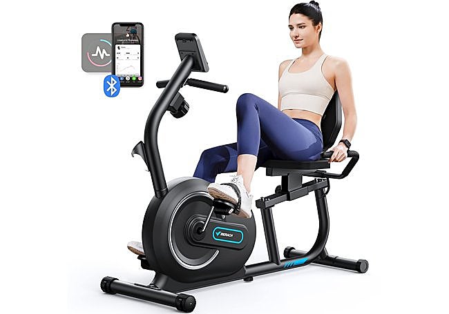 La bicicleta estática reclinada MERACH destaca por su resistencia magnética de 8 niveles y asiento ajustable. El monitor LCD muestra datos esenciales como tiempo, distancia y frecuencia cardíaca, permitiendo seguir el progreso en cada sesión sin complicaciones.