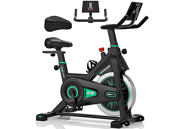 Si buscas una bicicleta estática profesional para casa, este modelo de DMASUN ofrece resistencia ajustable y funcionamiento silencioso, ideal para entrenar a cualquier hora. El asiento amplio y el manillar regulable proporcionan comodidad, mientras la pantalla LCD mejorada permite controlar datos como ritmo cardíaco, distancia y calorías de forma sencilla.
