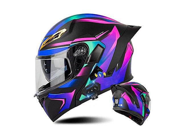Gracias a su diseño modular abatible, este casco Bluetooth de DIRERTYS combina practicidad y tecnología en un formato homologado ECE. Incorpora doble visera, una interior oscura y otra exterior transparente, lo que facilita la adaptación a distintas condiciones de luz durante la conducción. El sistema Bluetooth versión 5.0 permite recibir llamadas y escuchar música con claridad incluso a alta velocidad.