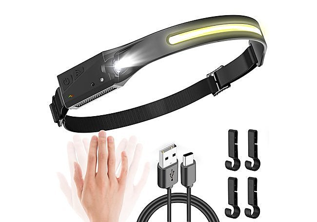 Con una banda LED COB de 230° y linterna lateral XPE, la UNBON linterna frontal proporciona iluminación amplia y precisa en cinco modos distintos. Su batería recargable USB-C de 1200 mAh ofrece hasta 8 horas de autonomía. El sensor de movimiento facilita el encendido manos libres, mientras que la protección IPX4 garantiza resistencia en entornos húmedos o lluviosos.