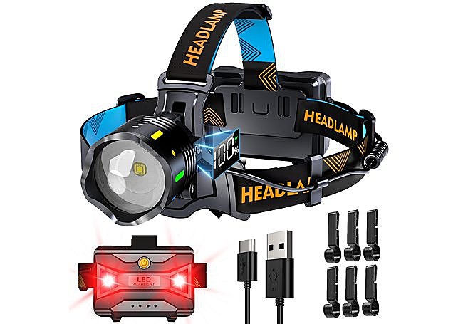 Con un haz de hasta 160.000 lux y 11 modos de iluminación, esta linterna frontal LED recargable XILUO incluye un ángulo ajustable de 125°, sensor de movimiento y zoom de foco. Dispone de batería de larga duración y pantalla LED de carga. La carcasa de aluminio proporciona resistencia y favorece la disipación del calor.