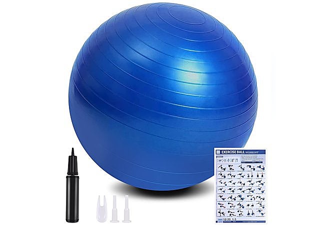 El hinchador incluido facilita el ajuste de firmeza, haciendo más cómodo incorporar la pelota a entrenamientos, sesiones de yoga o incluso como asiento ergonómico en la oficina.