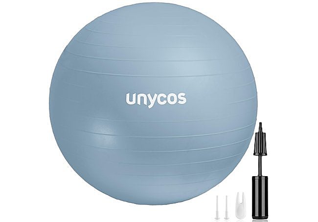 La pelota unycos, disponible en 55, 65 y 75 cm, destaca por su PVC extra grueso y su sistema anti-explosión, soportando hasta 300 kg. El acabado antideslizante aporta seguridad tanto en ejercicios de fuerza como en estiramientos o yoga.