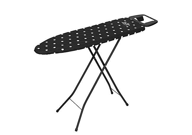 Si valoras la estabilidad y buscas una tabla adaptable, la Taurus Argenta Black ofrece un diseño compacto y funcional. Su estructura ligera facilita el transporte y almacenamiento, y la superficie de 110 x 32 cm permite planchar prendas variadas con soltura.
