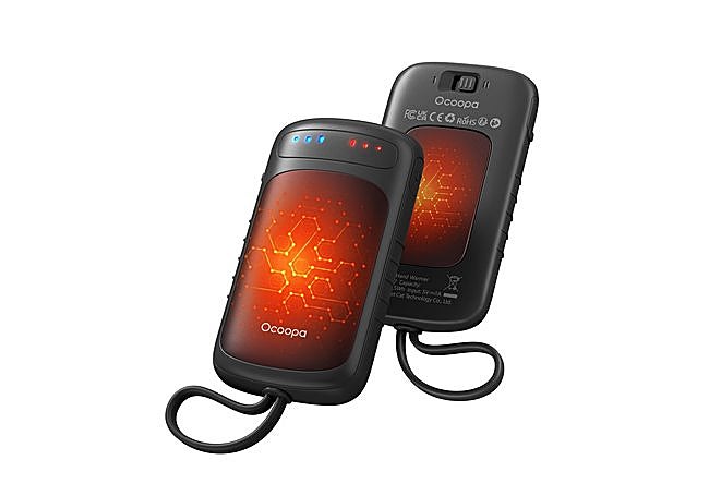 El calientamanos recargable OCOOPA se calienta en solo tres segundos y tiene una duración de batería de hasta ocho horas. Su diseño ovalado y ligero de 67 gramos facilita su transporte. Cuenta con tres niveles de temperatura regulable y una doble zona de calor para una distribución uniforme del calor en climas fríos.