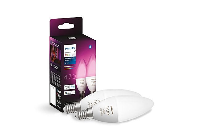 Con tecnología Bluetooth y compatibilidad con Alexa y Google Home, el pack de dos bombillas Philips Hue E14 LED ofrece más de 16 millones de colores y regulación de intensidad. Su diseño permite controlar la iluminación desde la app o por voz, creando ambientes personalizados con luz blanca cálida o fría y una gestión sencilla de hasta 10 dispositivos simultáneamente.