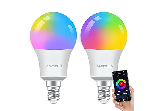 Con tecnología RGB+CCT, la bombilla inteligente ANTELA LED E14 ofrece 16 millones de colores, brillo regulable hasta 806 lúmenes y temperatura de color ajustable entre 2700K y 6500K. Su control por voz o app permite programar horarios, sincronizar con música y gestionar grupos de luces, todo con bajo consumo energético y una vida útil de hasta 15.000 horas.