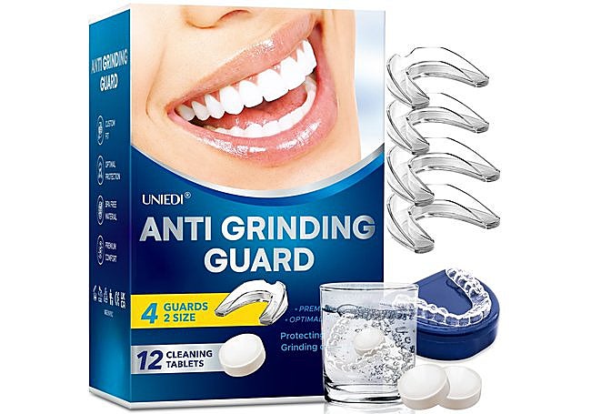 Este protector bucal de UNIEDI destaca por su material libre de BPA y su formato moldeable. El set incluye cuatro férulas en dos tamaños, lo que facilita encontrar el ajuste adecuado y permite personalizar el recorte según la forma de la boca.