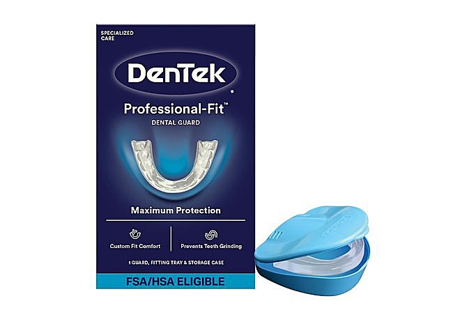 DenTek ofrece este protector nocturno con ajuste térmico que se adapta a la forma de la boca tras hervirlo y morderlo. El formato transparente resulta discreto y el material está libre de acrílicos, pensado para adultos que necesitan protección fiable frente al bruxismo.