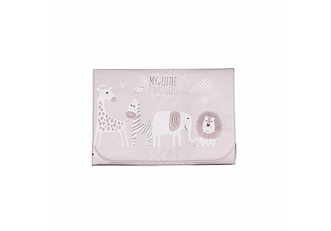¿Te gustaría cambiar a tu bebé en cualquier lugar sin complicaciones? El cambiador portátil de Plastimyr destaca por su diseño ligero y compacto, ideal para usar en casa o durante los paseos. Su estampado safari sobre fondo gris añade un toque divertido, mientras que el material plastificado protege frente a pequeños accidentes.