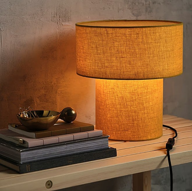 Lo que más me ha llamado la atención de esta lámpara con pantalla de lino es diseño llamativo pero combinable con cualquier estilo. Está disponible en color amarillo o con estampado. Elige la que prefieras y dale un toque de luz cálida a tu hogar por 49,99€.
