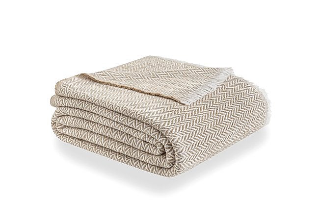 Con algodón reciclado y diseño de espiga, la manta Todocama está fabricada con materiales que proporcionan una textura suave y transpirable. Fabricada íntegramente en España utilizando métodos que ahorran miles de litros de agua en su producción, la manta ofrece una textura agradable y un acabado sostenible.