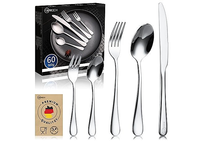 Con líneas limpias y acabado pulido espejo, el juego de cubiertos BEWOS para 12 personas ofrece 60 piezas de acero inoxidable resistentes y fáciles de mantener. El diseño elegante y el mango ergonómico aportan comodidad en cada uso, adaptándose tanto a comidas cotidianas como a ocasiones especiales.