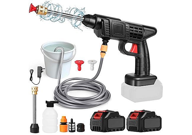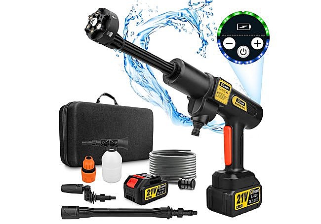 Gracias a su diseño compacto y batería de 6000mAh, la pistola de agua a presión de EagerMinds resulta práctica para limpiar el coche o el jardín sin depender de enchufes. Su motor de cobre y bomba de pistón alcanzan hasta 30 bar de presión, permitiendo eliminar suciedad difícil en minutos.