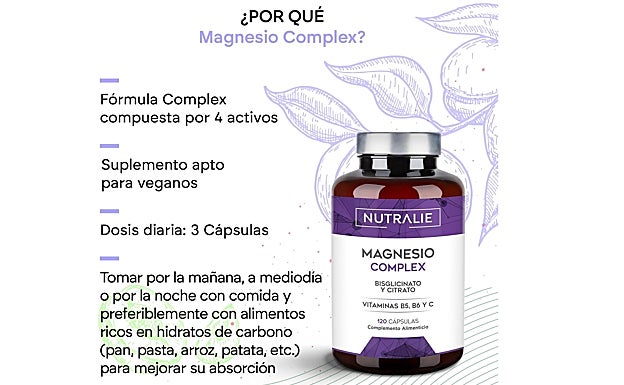 - Aporte adicional de vitaminas B5, B6 y C, que refuerzan los efectos positivos del magnesio sobre el sistema nervioso y el metabolismo energético.