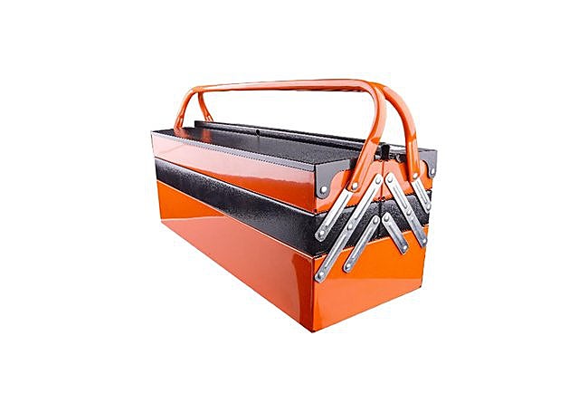 El acabado resistente a la corrosión y el diseño multicompartimento facilitan la organización de tornillos, llaves o piezas pequeñas, manteniendo todo bien separado y accesible incluso en talleres exigentes. El asa reforzada permite mover la caja cómodamente entre garaje, oficina o exteriores, sin importar el peso.