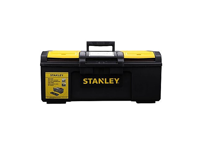 La Stanley 1-79-218 ofrece un formato de 59,5 x 28,1 x 26 cm, fabricada en plástico resistente y con un sistema de autocierre que facilita el acceso rápido. El diseño incorpora una bandeja extraíble, permitiendo guardar herramientas grandes en el compartimento inferior y pequeños accesorios en los organizadores de la tapa. Su estructura ligera y el asa ergonómica hacen que moverla sea sencillo, incluso llena.