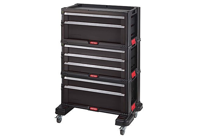 Este organizador de herramientas Keter en color negro aprovecha cada centímetro con sus siete cajones y módulos extraíbles. Fabricado en polipropileno robusto, soporta hasta 70 kg y resiste el uso intensivo, lo que lo convierte en una opción sólida para profesionales y entornos exigentes. El sistema de compartimentos separadores facilita tener desde tornillos hasta herramientas grandes siempre a mano, evitando búsquedas innecesarias.