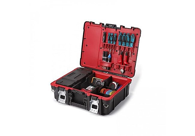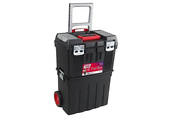 La Tayg 58 Trailbox destaca por su estructura de plástico duradero y su tamaño único, lo que facilita almacenar desde destornilladores hasta piezas más voluminosas. El cierre metálico proporciona seguridad adicional y la combinación de colores permite localizarla fácilmente en cualquier espacio de trabajo. Los cuatro compartimentos internos ayudan a mantener todo ordenado y accesible, evitando pérdidas o desorden.