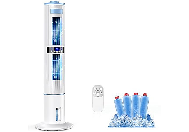 Si buscas una solución eficiente para refrescar estancias amplias, el climatizador evaporativo portátil de Lofrritp destaca por su diseño compacto y vertical, adaptándose a cualquier espacio. Su motor de 65 W y el tanque de 4 litros ofrecen enfriamiento prolongado, mientras que los cuatro modos y la doble oscilación permiten personalizar el ambiente.