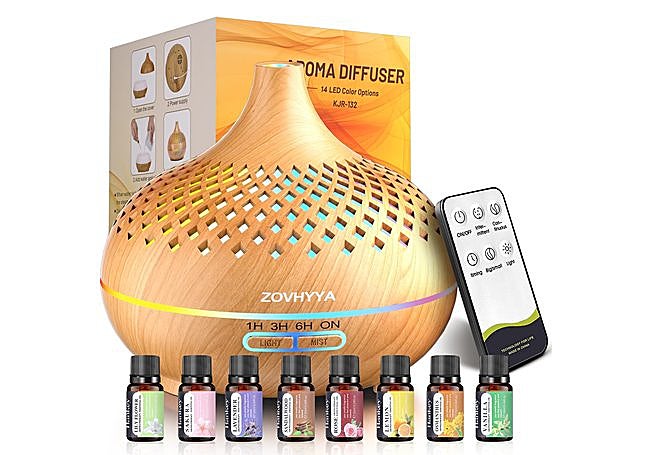 El difusor de aroma ZOVHYYA de 500 ml combina gran capacidad y tecnología avanzada, permitiendo disfrutar de hasta 14 colores LED distintos y control remoto para mayor comodidad. El temporizador ajustable y el apagado automático aportan tranquilidad en su uso diario.