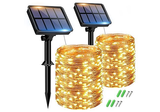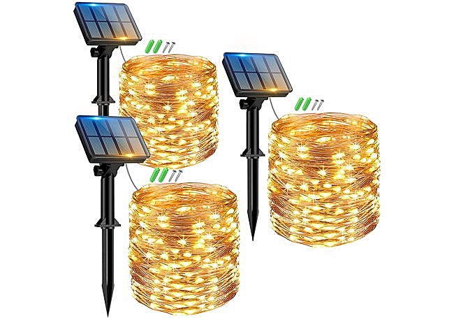 Si buscas versatilidad para decorar exteriores, este set de guirnaldas solares Peasur destaca por su diseño flexible y resistente. Incluye tres cables de doce metros con ciento veinte LED cada uno, ideales para terrazas, árboles o jardines. La luz blanca cálida crea una atmósfera acogedora, perfecta para celebraciones o noches tranquilas.