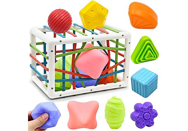 Con una estructura compacta y colorida, la caja sensorial de Mailesi invita a los pequeños a explorar formas y texturas. Incluye nueve piezas entre bolas blandas y bloques fáciles de agarrar, fabricadas en materiales seguros y suaves. El diseño con bandas elásticas ofrece un reto divertido que evoluciona con el desarrollo del bebé.