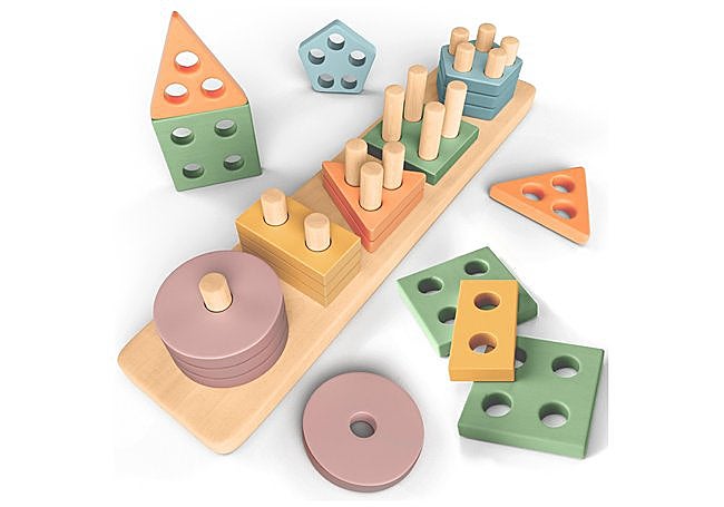 Entre los juguetes de madera para los más pequeños, este set de Sweety Fox destaca por sus bloques apilables en tonos pastel. Incluye veinte piezas de diferentes formas y colores suaves, pensadas para ser manipuladas fácilmente por manos pequeñas. Su acabado liso y las esquinas redondeadas aportan seguridad durante el juego diario.