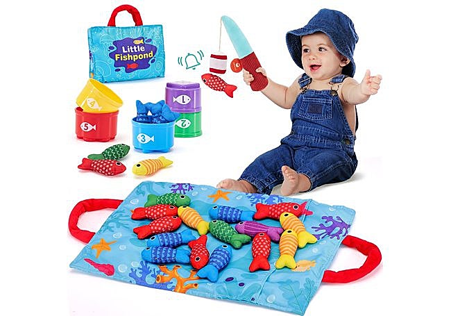Con su enfoque lúdico, el juego de pesca Montessori de hahaland propone una experiencia multisensorial para bebés a partir de seis meses. Incluye quince peces de tela, cinco cubos apilables y una caña adaptada a manos pequeñas, todo presentado en una bolsa fácil de transportar. Los materiales suaves y seguros aseguran tranquilidad durante el uso diario.