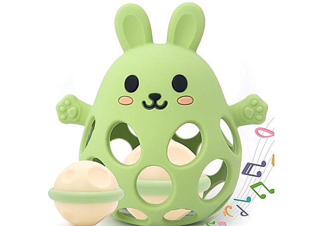 Con su formato compacto y diseño en silicona de grado alimentario, este sonajero sensorial de M4CQSBLE combina mordedor, bola sensorial y sonajero en una sola pieza fácil de agarrar. Sus colores vivos y la forma de conejito atraen la atención de los bebés, mientras los materiales suaves y sin bordes protegen encías y manos.