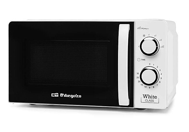 El microondas portátil Orbegozo MI 2117 es un electrodoméstico compacto ideal para cocinas pequeñas y caravanas. Con un diseño en negro y blanco, ofrece 20 litros de capacidad y seis niveles de potencia, facilitando su uso con mandos giratorios y un tirador. Su temporizador de hasta 30 minutos y la señal acústica al finalizar añaden comodidad.