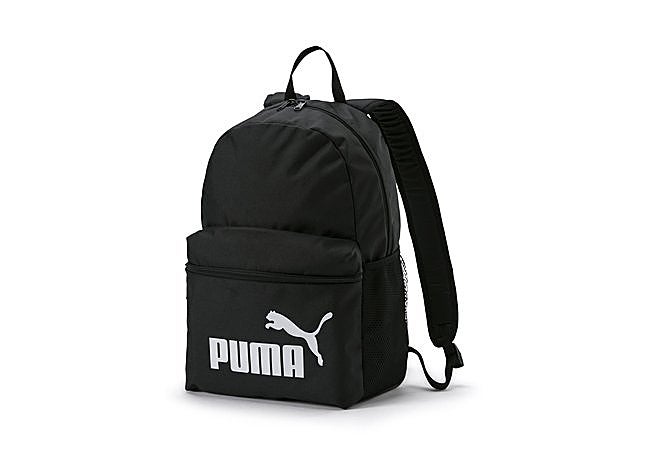 La PUMA Phase destaca por su diseño ligero y moderno, con un compartimento principal espacioso y cierre de cremallera doble. El bolsillo frontal y el lateral de malla permiten guardar objetos pequeños y botellas de agua, facilitando la organización diaria.